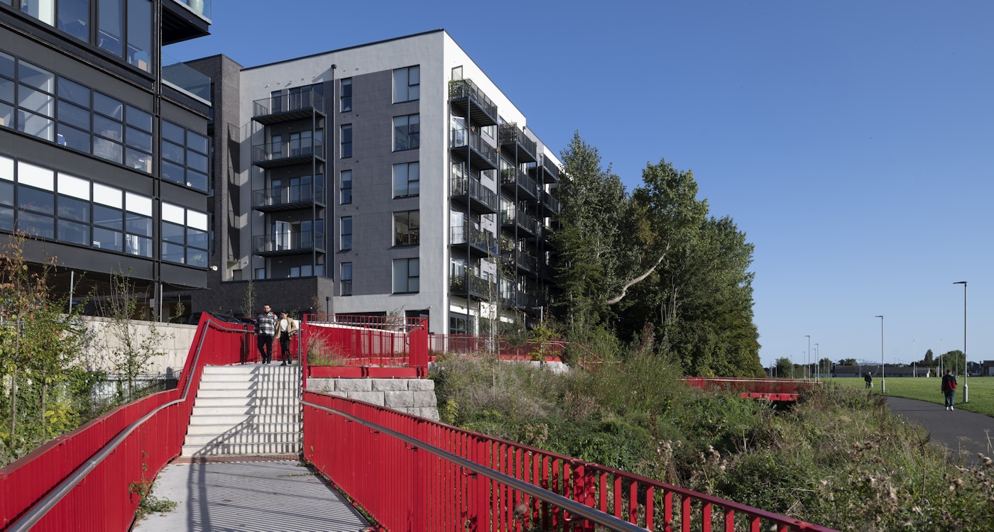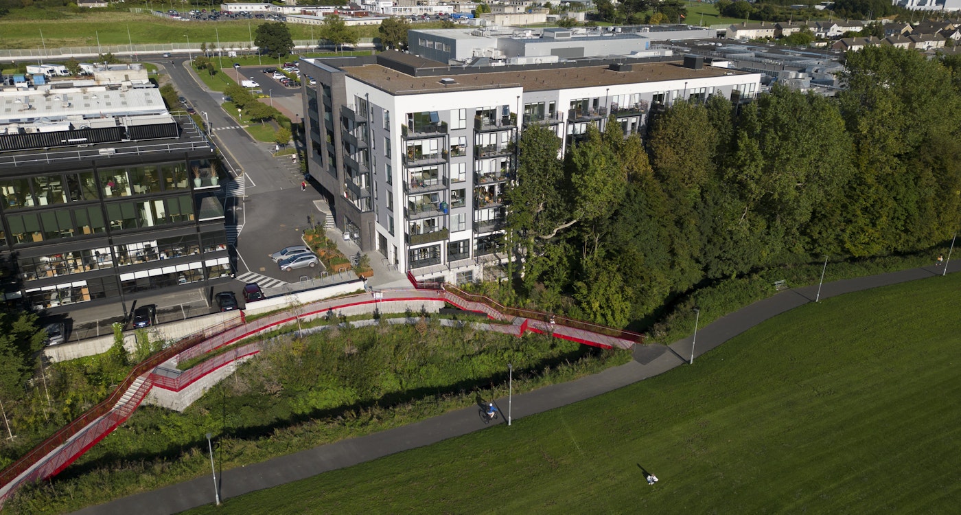 Mentec House includes a striking new bridge that crosses to Clonkeen Park. Its visually dramatic appearance will provide a pleasant viewing experience for passers-by fortunate to live in such a beautiful setting.