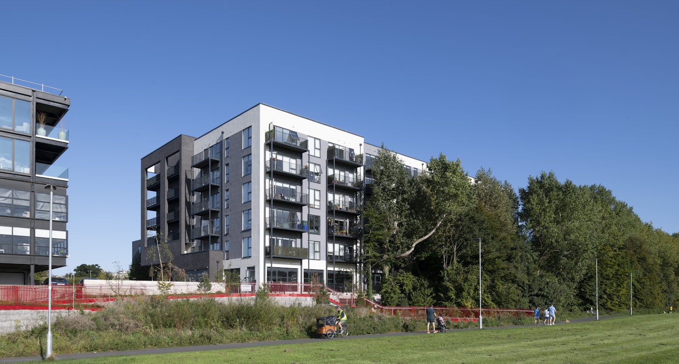 The scheme, for Kouchin Properties, is a high quality residential/mixed use development that forms part of the regeneration of an outdated industrial area in Dun Laoghaire. It provides a mixture of high end and affordable rental apartments, in answer to the critical housing shortage currently in place around Dublin. The project demonstrates how the use of MMC and digital technologies can be used to provide an efficient and sustainable design.