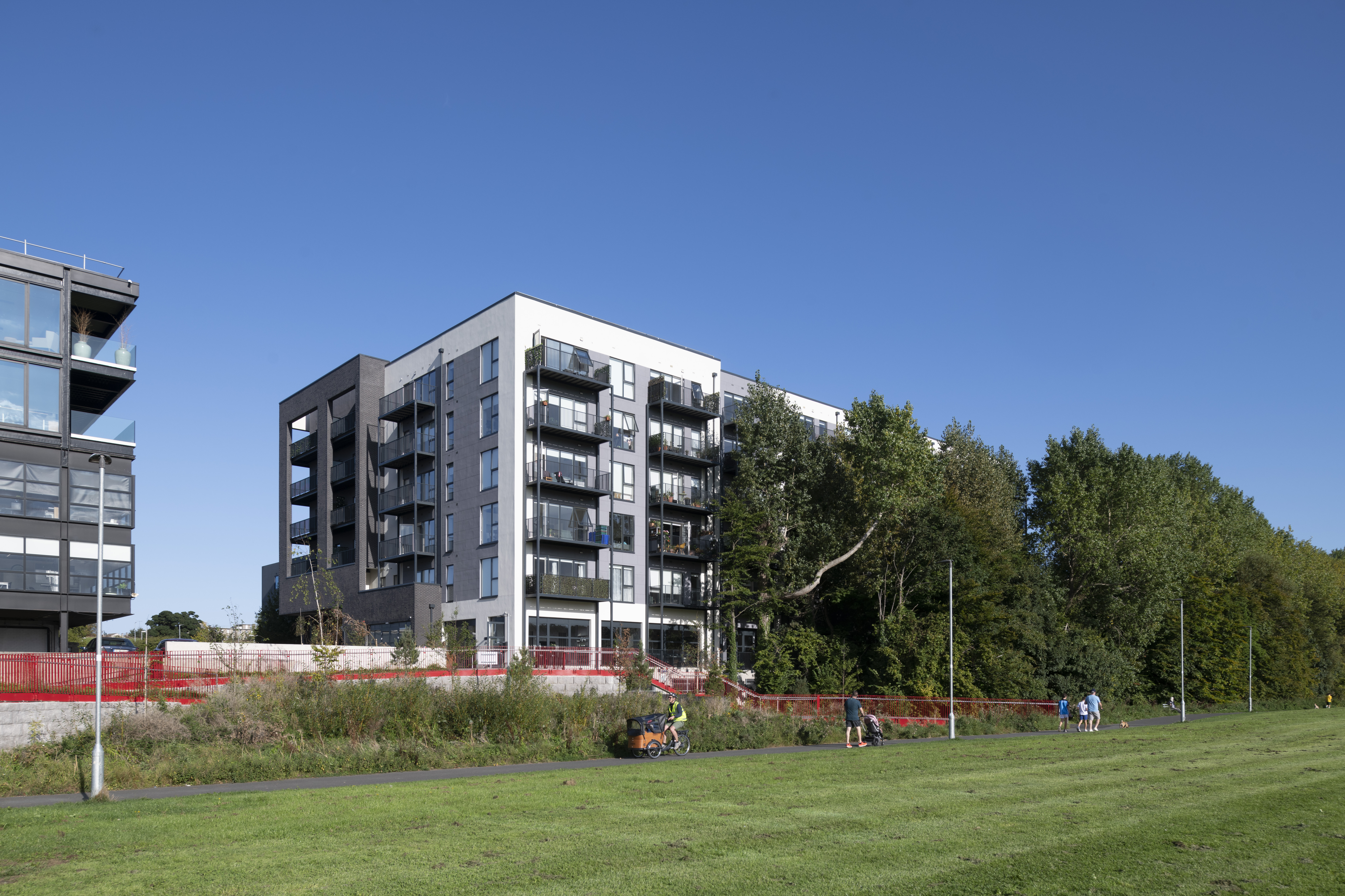 The scheme, for Kouchin Properties, is a high quality residential/mixed use development that forms part of the regeneration of an outdated industrial area in Dun Laoghaire. It provides a mixture of high end and affordable rental apartments, in answer to the critical housing shortage currently in place around Dublin. The project demonstrates how the use of MMC and digital technologies can be used to provide an efficient and sustainable design.