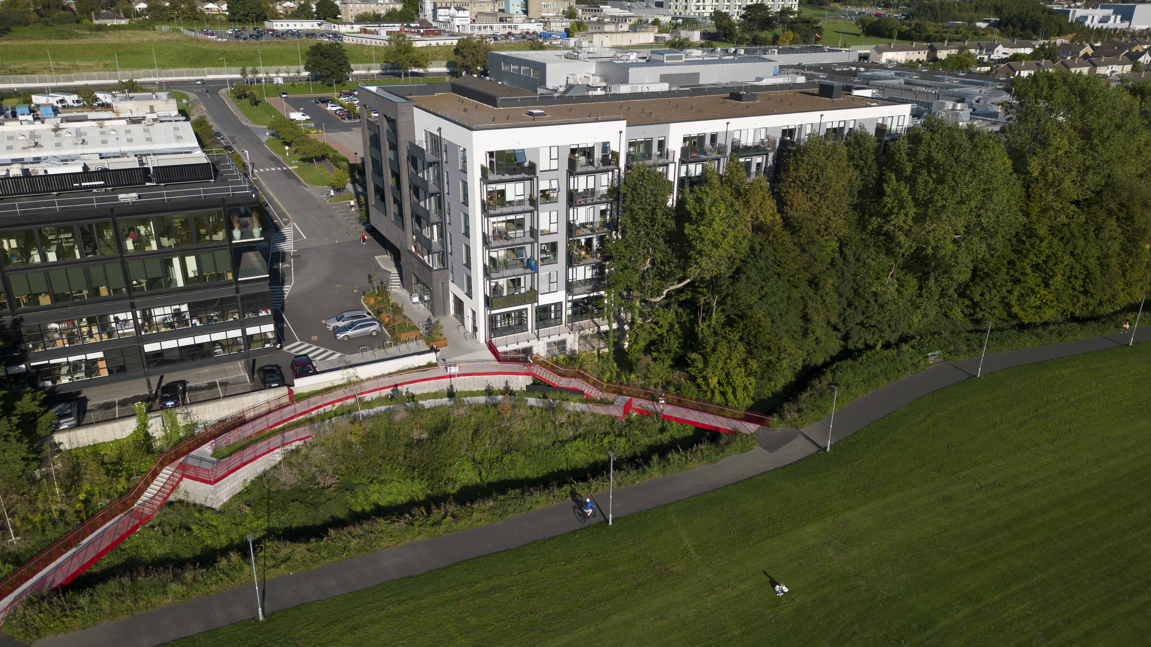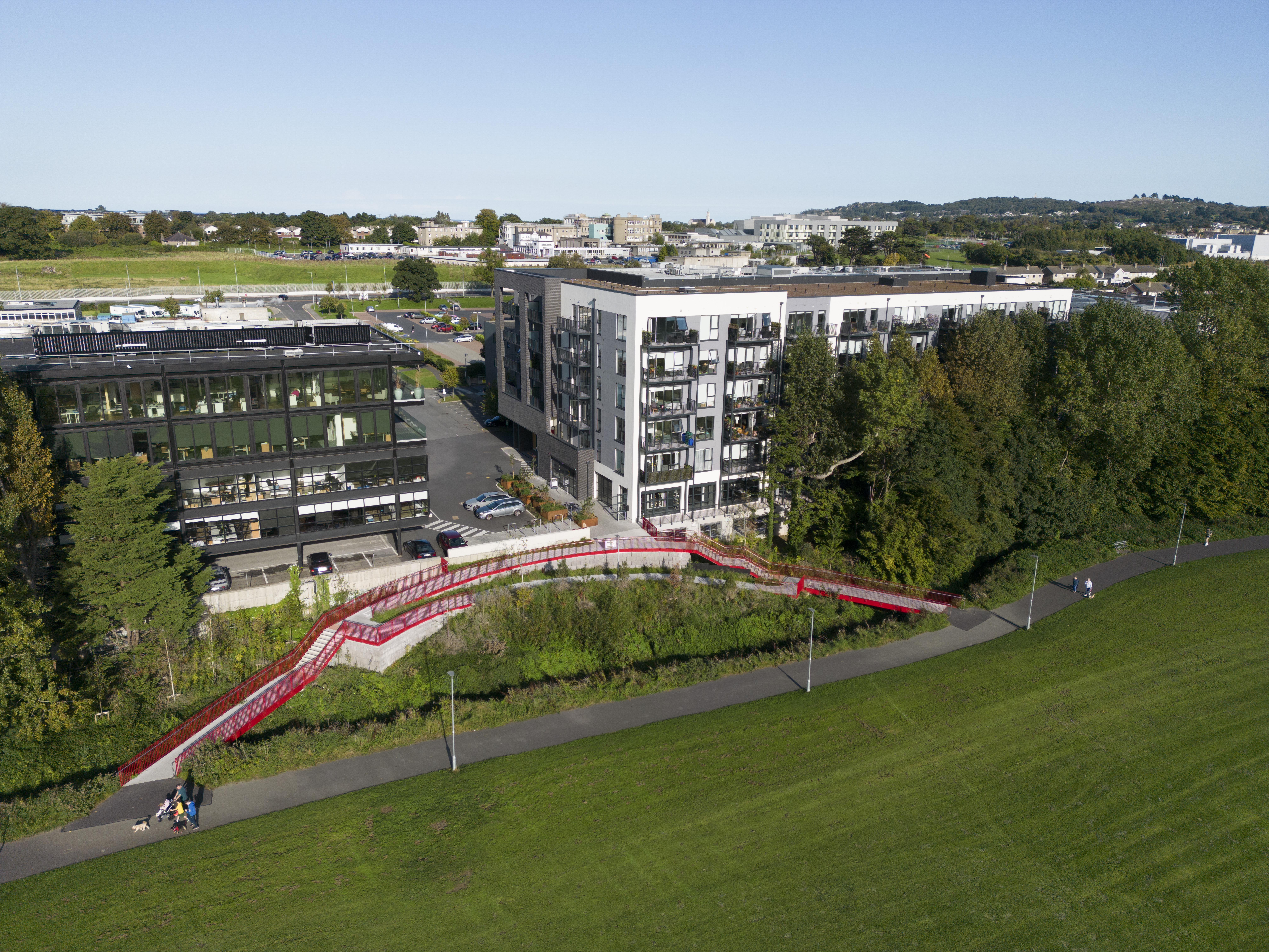 Mentec House includes a striking new bridge that crosses to Clonkeen Park. Its visually dramatic appearance will provide a pleasant viewing experience for passers-by fortunate to live in such a beautiful setting.