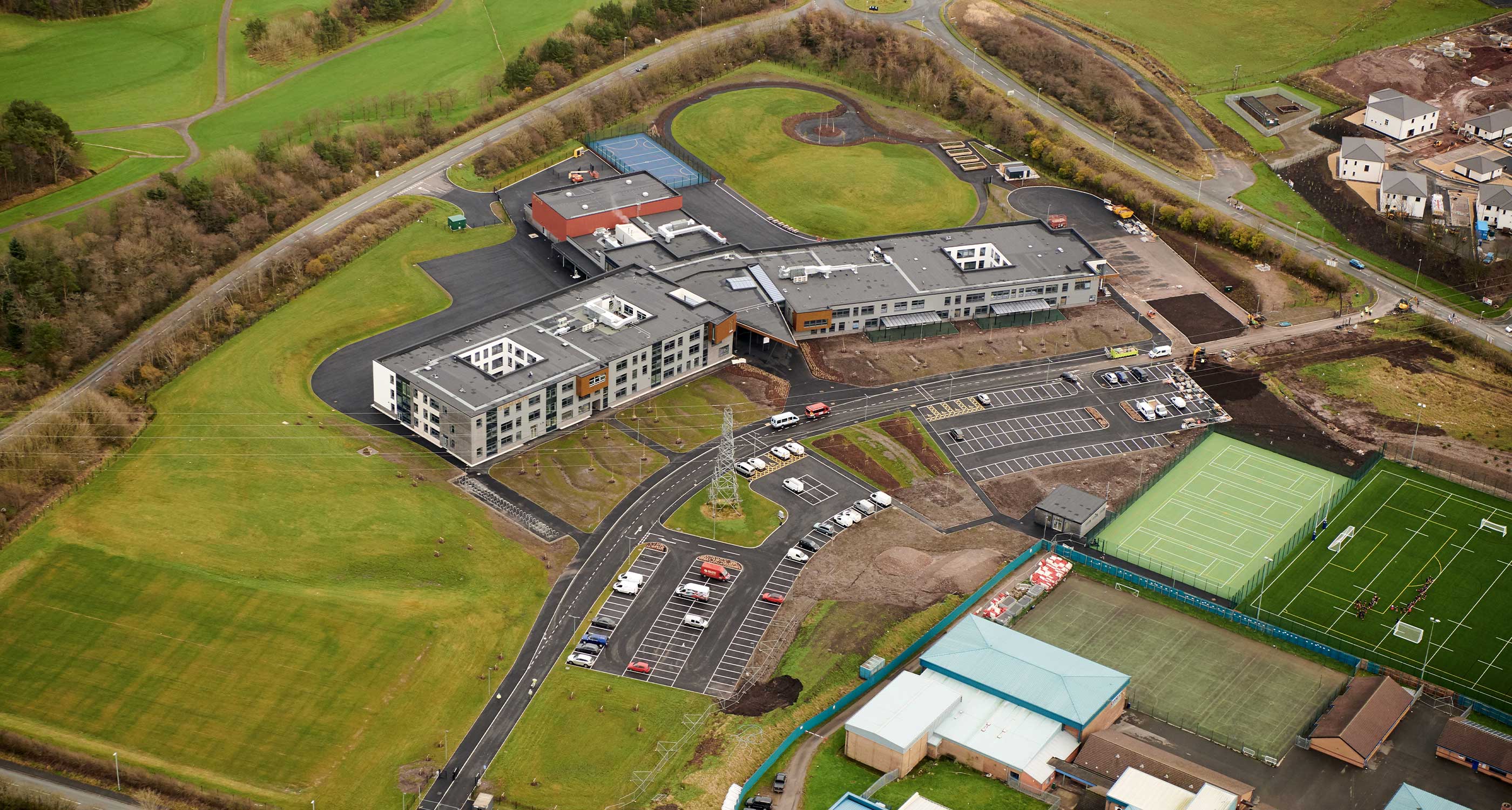 It is a combination of 2 and 3 storey buildings that accommodate 800 pupils. All-weather sports pitches are available to both students and the local community and a hydrotherapy pool has been provided for the SEN school.