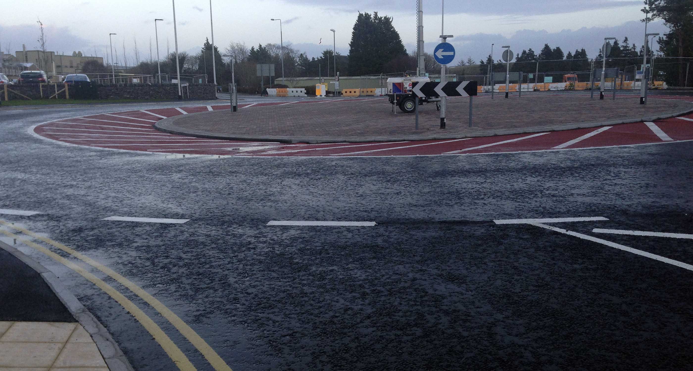 Extensive adoptable highway works to provide a new road layout surrounding the site.