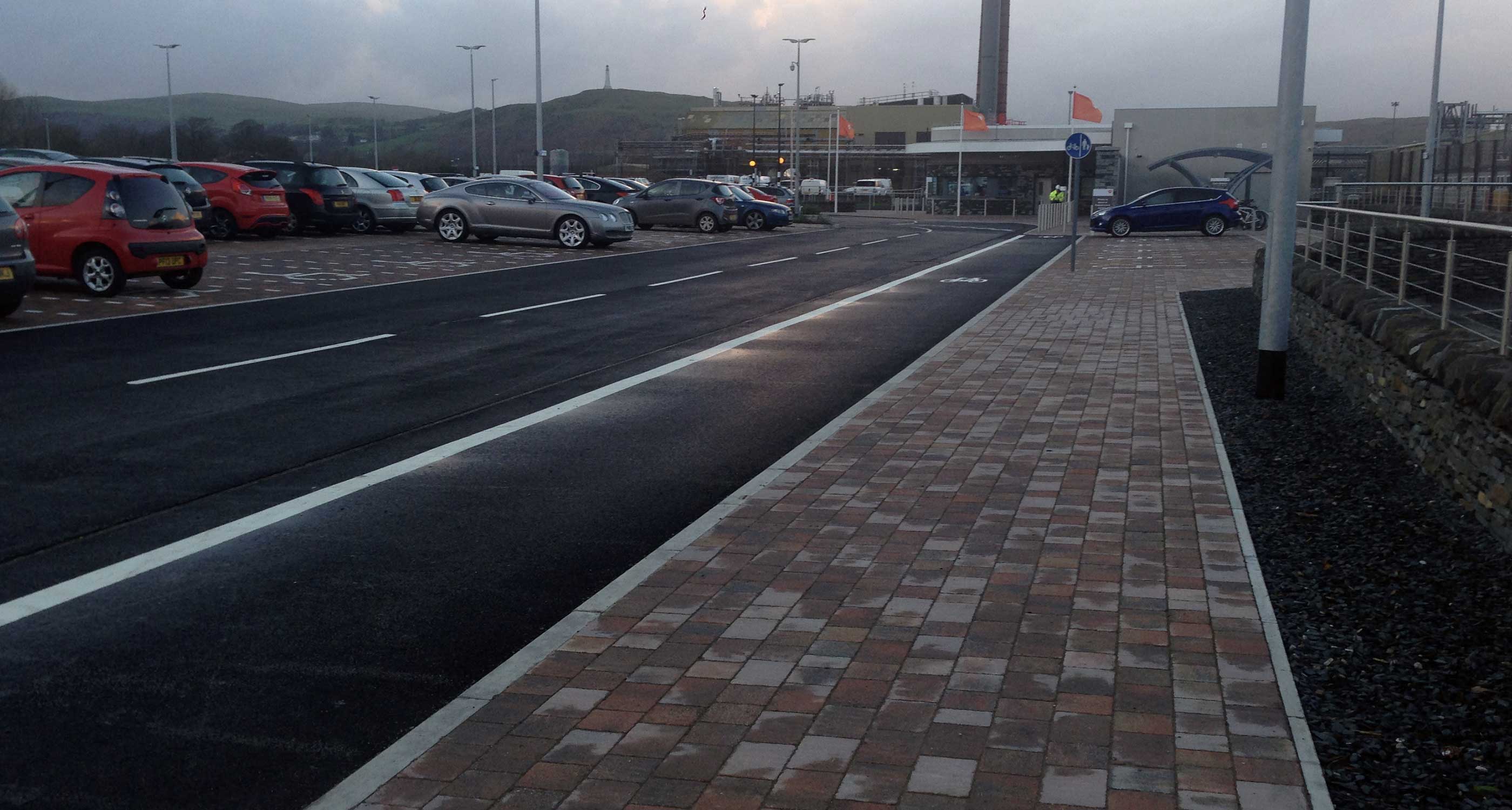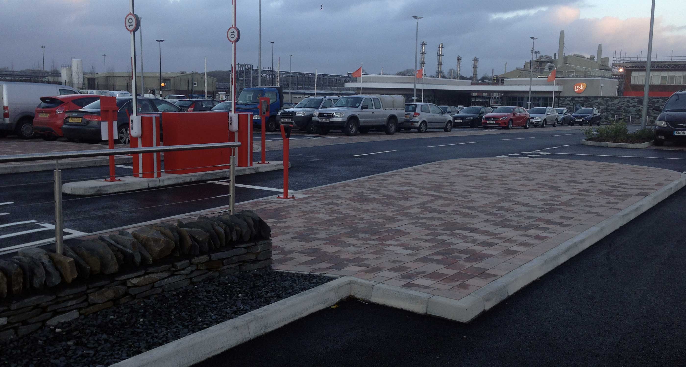 The project comprises of a replacement car park, a security gatehouse with staff facilities, a reception building and better site access for the new GlaxoSmithKline bio-pharmaceutical manufacturing facility in Ulverston.