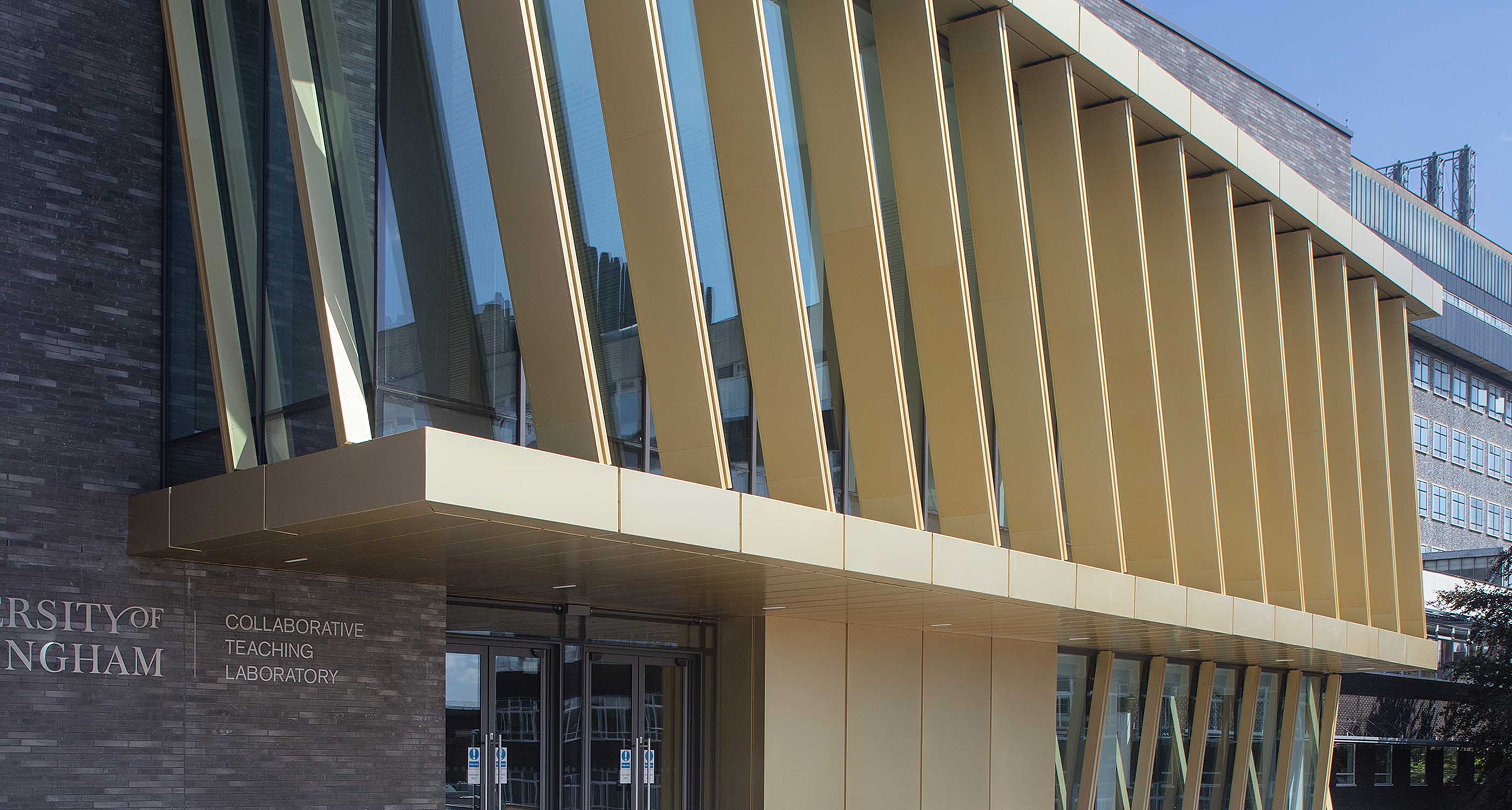 A striking design and multi-award winning Collaborative Teaching Laboratory for the University of Birmingham, consiting of an Engineering Lab and a state-of-the-art facilitiy for practical STEM teaching laboratories,