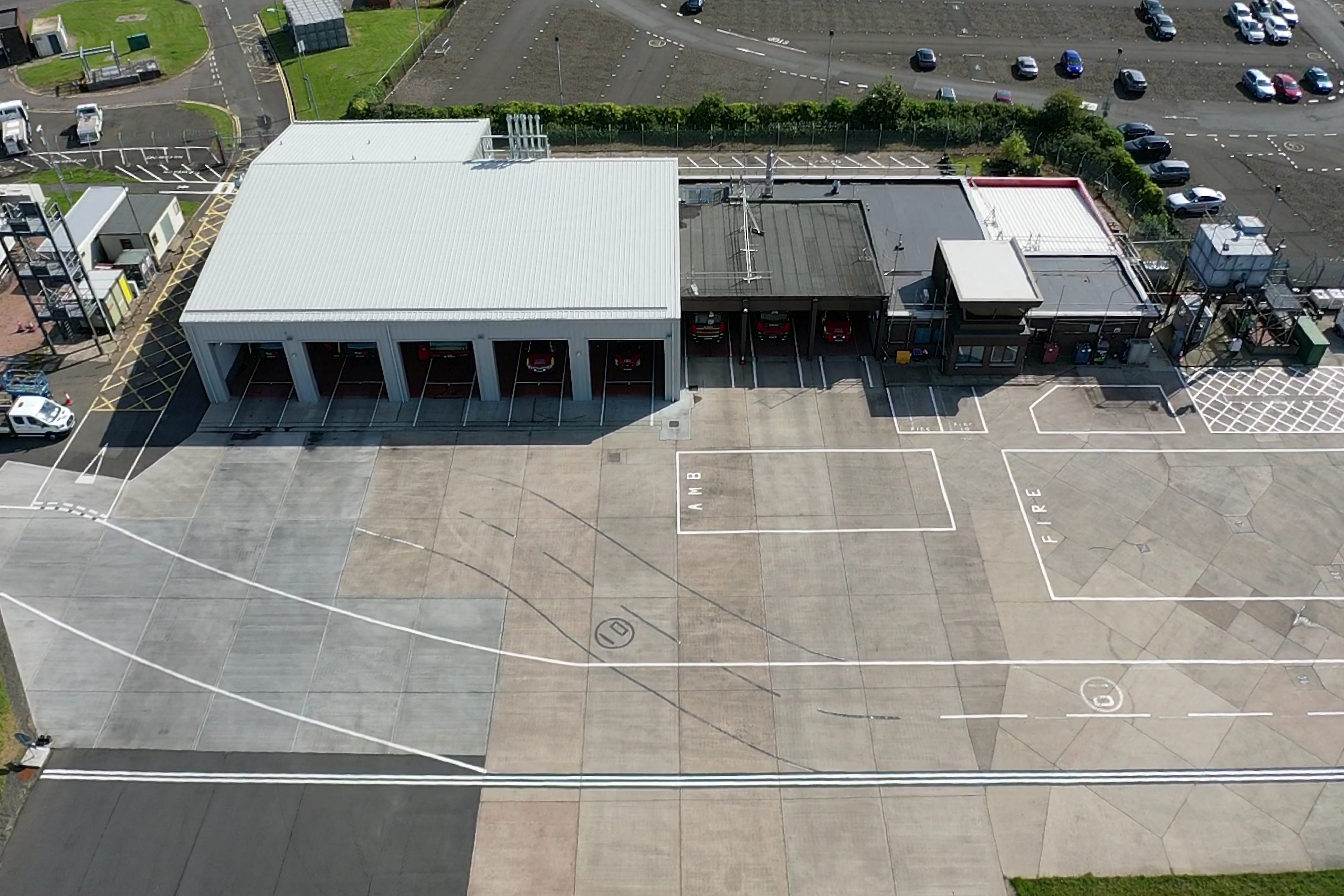 The new extension and mezzanine were undertaken while retaining the fire station in operation and while the nearby runway continued to be in service.