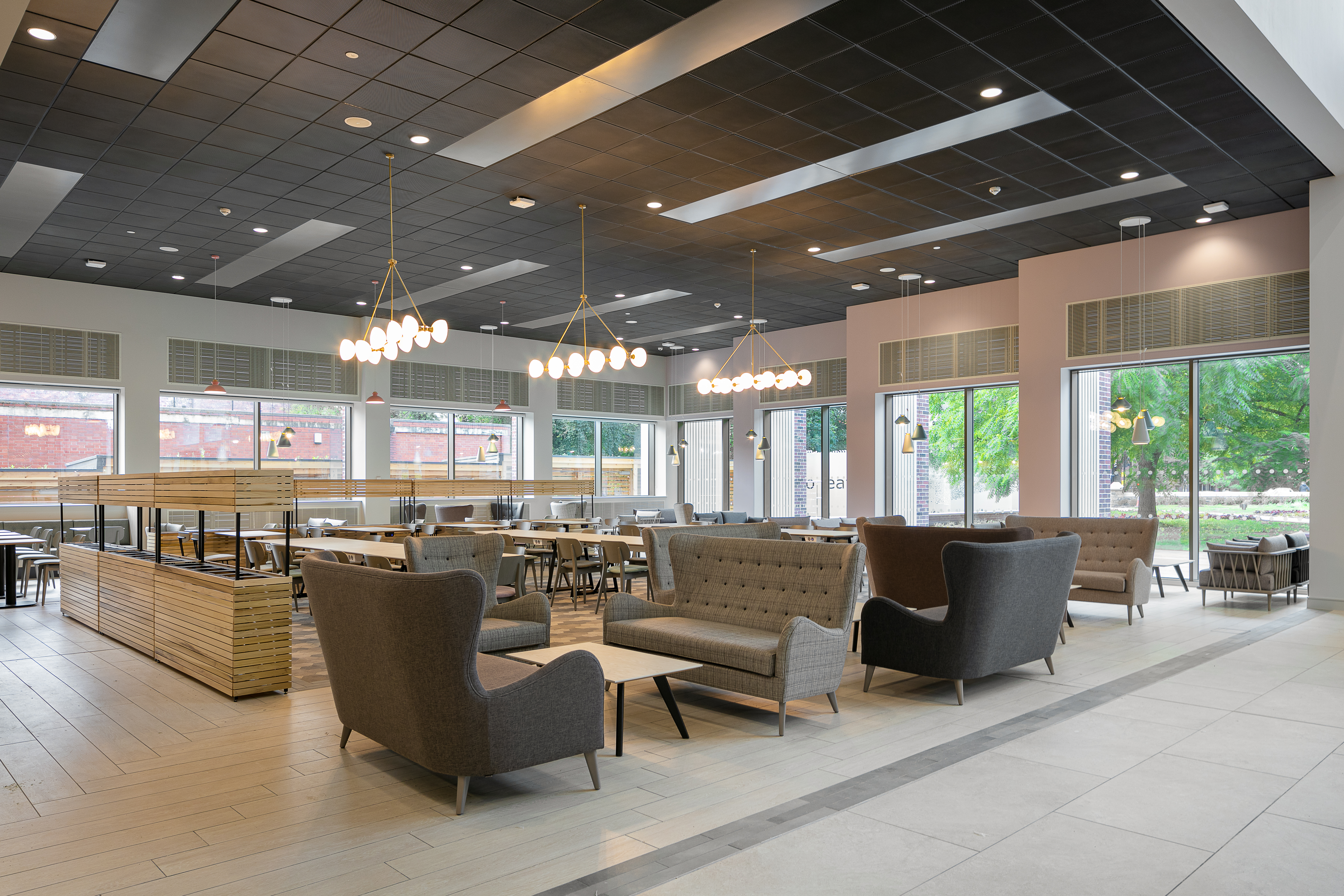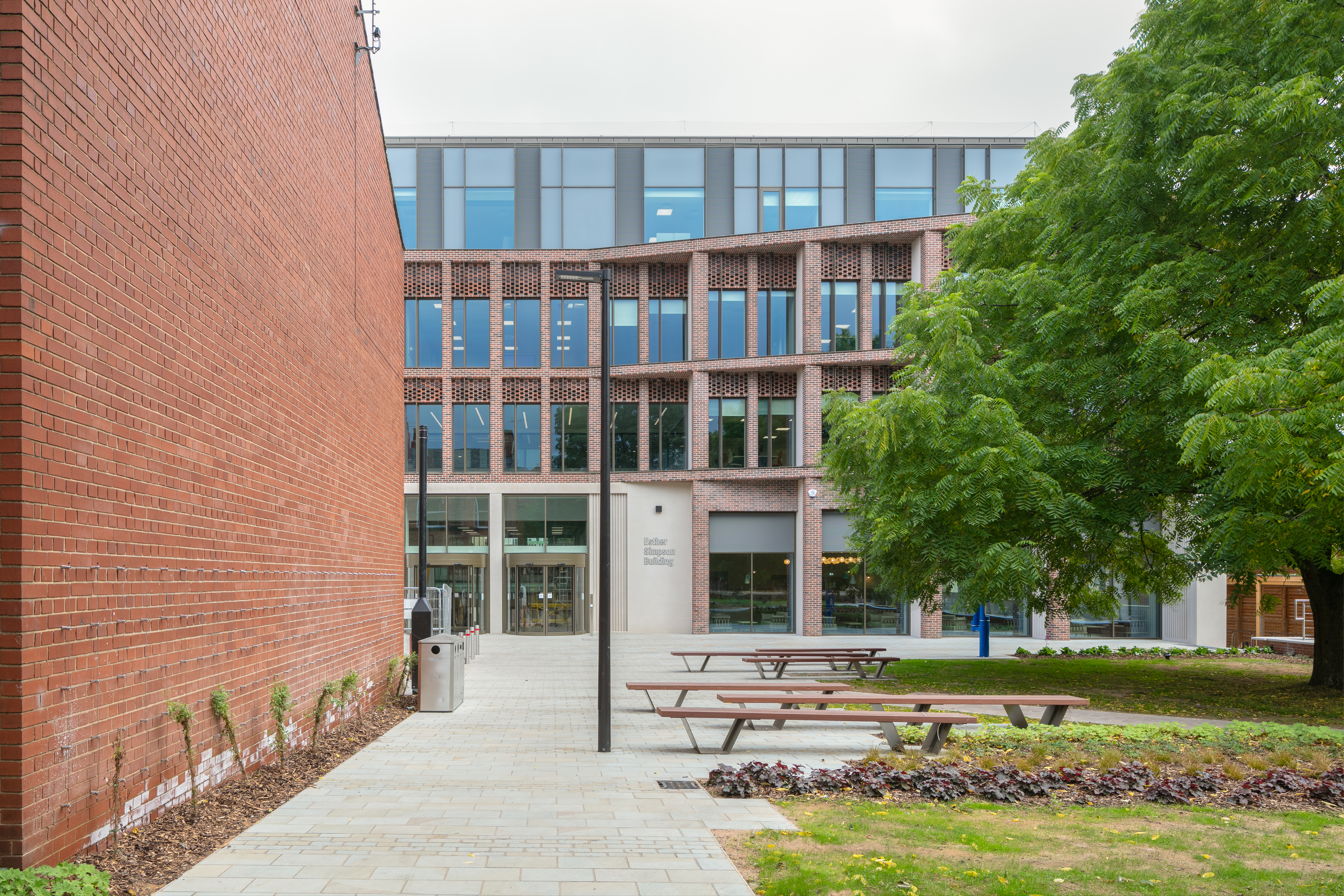 The Esther Simpson Building forms the third phase of the redevelopment of the Business School and School of Law, creating a new gateway into the campus. Its design brings together high‑quality teaching, research and collaboration spaces in a building that acts as a central hub for students and staff.