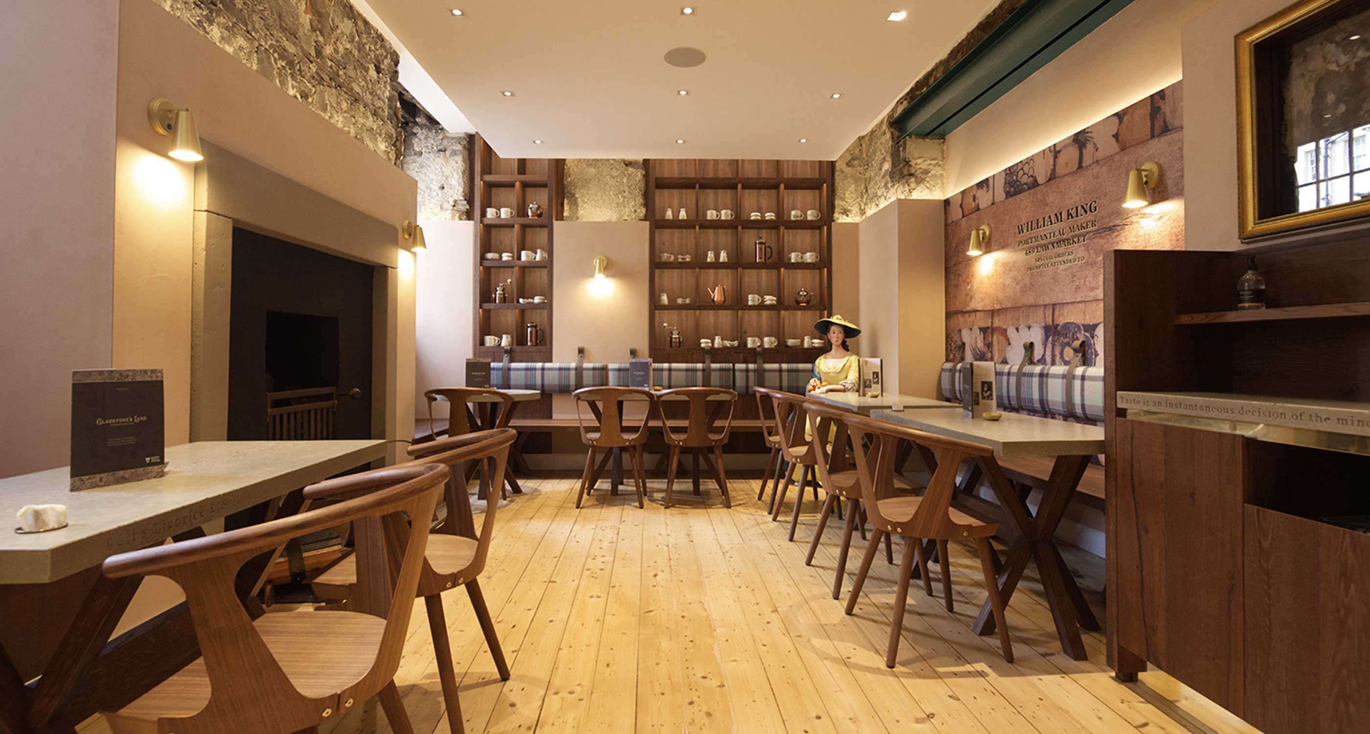 The National Trust for Scotland refurbished Gladstones Land building, creating a new ‘ice cream and coffee parlour’ on the ground floor, which weaves 17th century details in to the design.