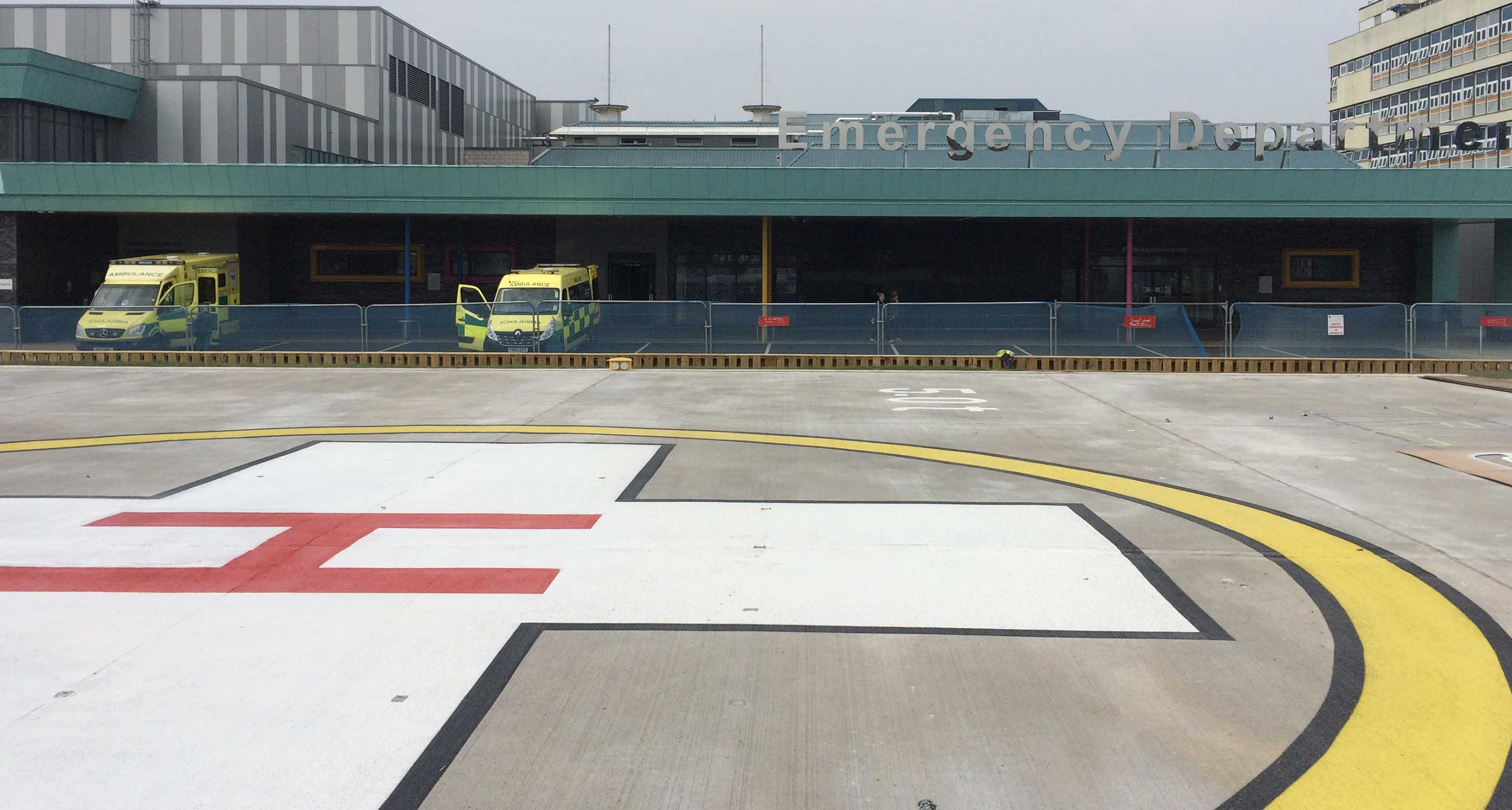 This new on-site raised helicopter landing pad, funded by the HELP Appeal, is situated immediately adjacent to the hospital’s Urgent Care and Trauma Centre.