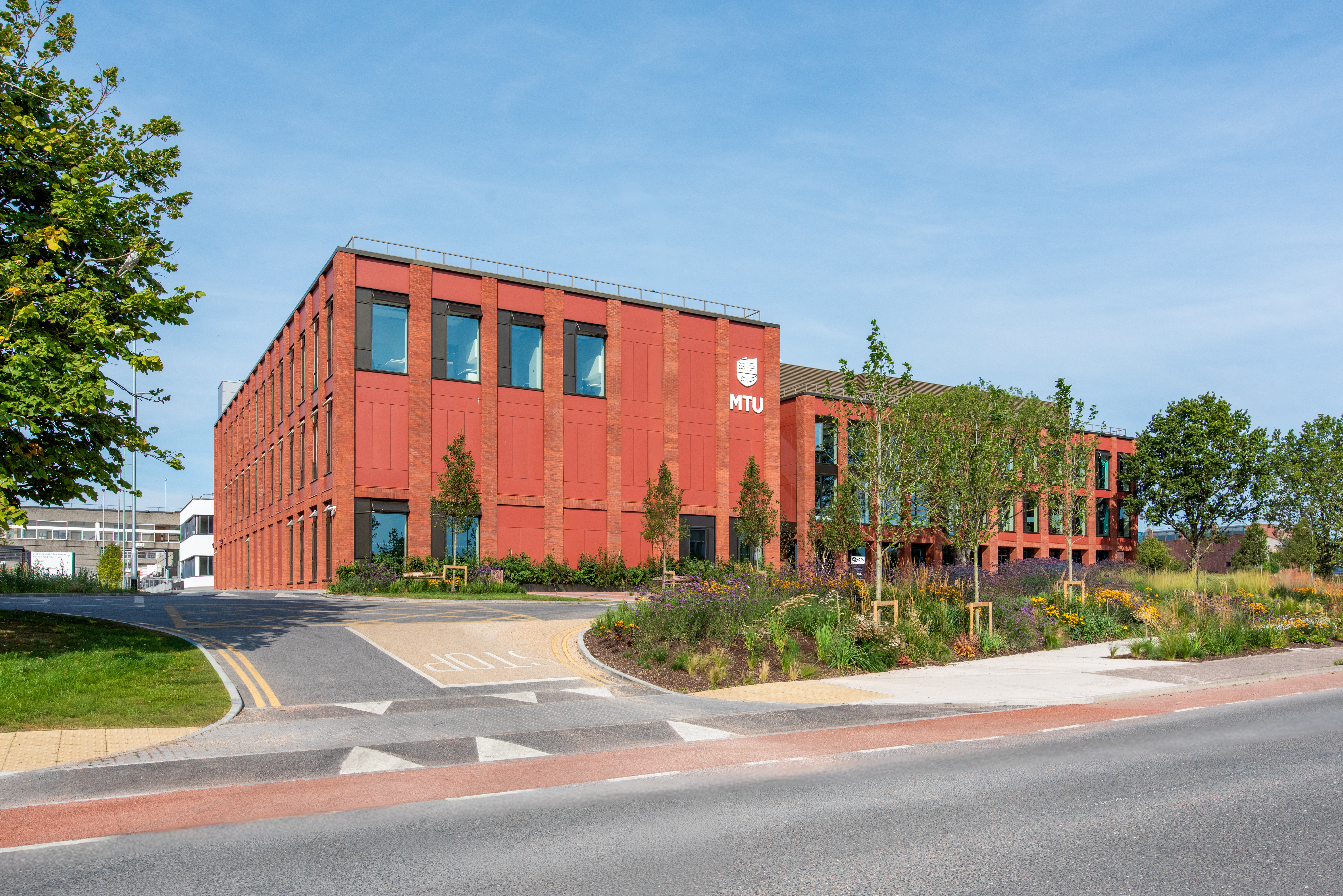 Comprising three buildings and spanning 6,060 m², the development enhances opportunities for student support, industry engagement, entrepreneurship, and research and innovation. It also features event spaces for conferences, a striking double-height café at ground level, and a pedestrian plaza that serves as a new landmark and the welcoming front door to the Bishopstown campus for students and visitors.