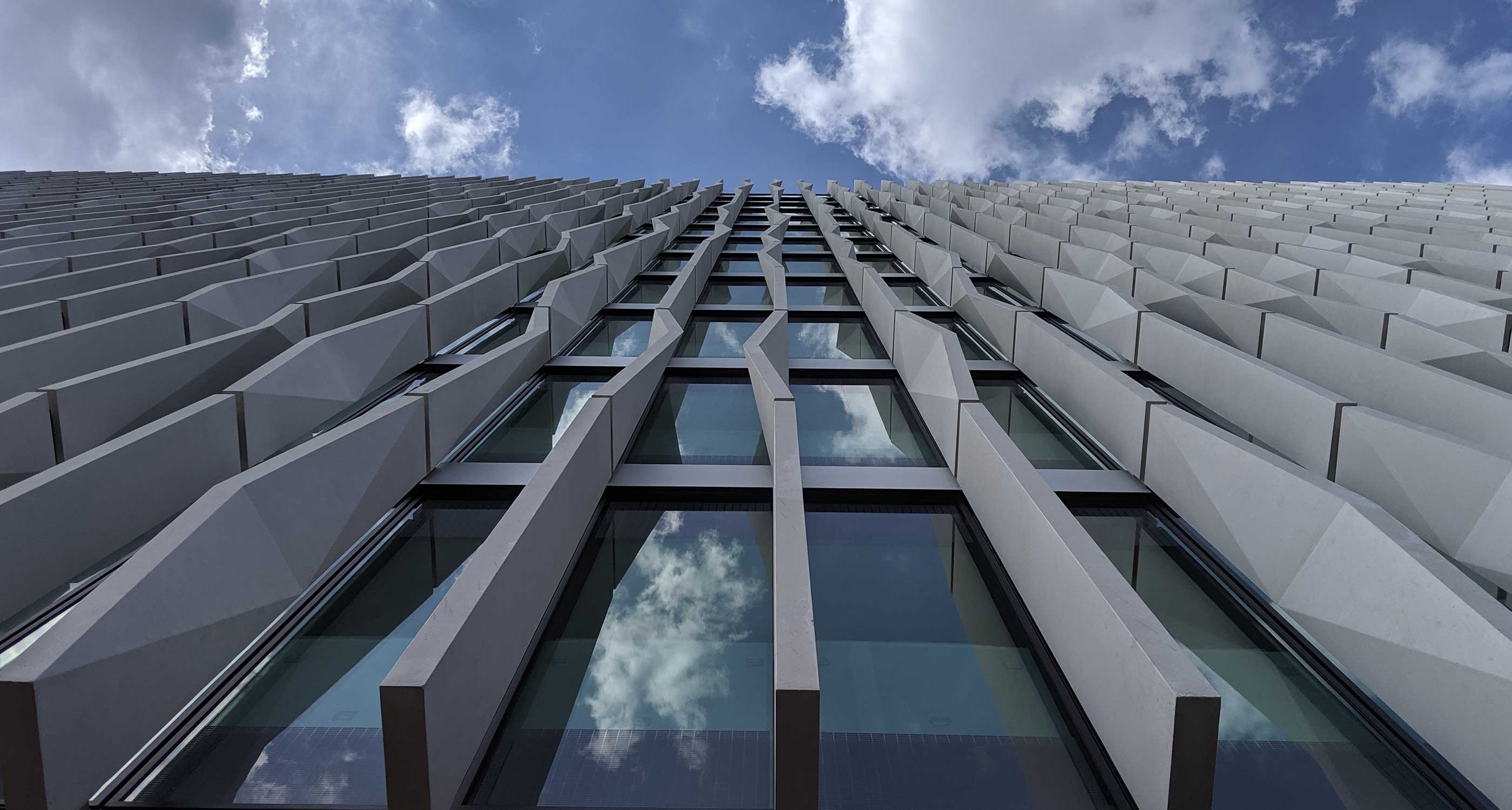 The frame agreed and used was reinforced concrete. The 14th floor uses a steel frame structure to articulate a triangular geometry and integrate a recessed BMU unit.