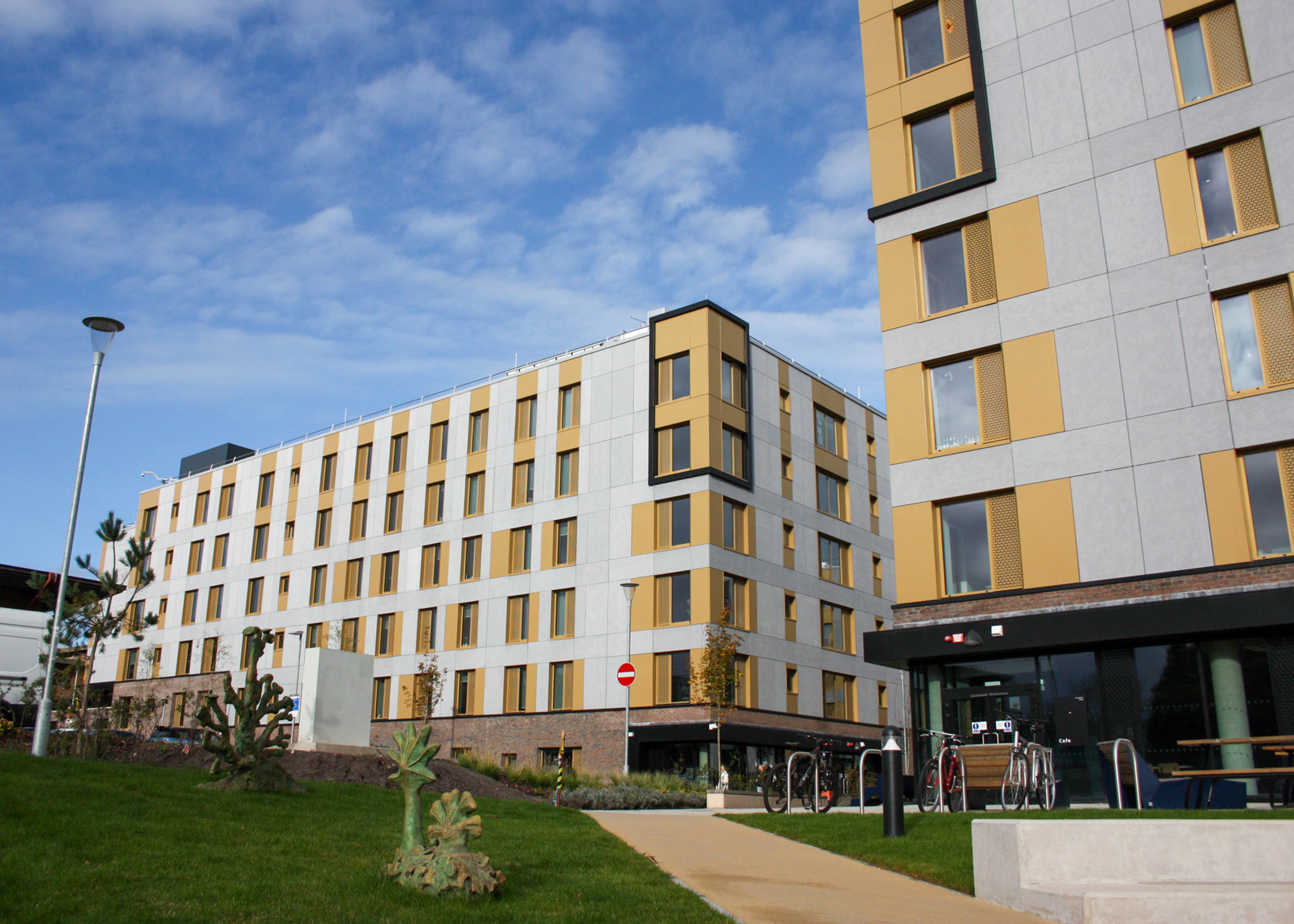 We pioneered the use of quantitative frame selection so that all parties could contribute, weight and assess different design drivers such as acoustic performance, airtightness, embodied carbon (which we measured for each option), thermal performance, etc. An efficient concrete frame was determined as the optimum solution to deliver the 950 rooms to the high environmental standards required. This project would become one of the largest Passivhaus development in Europe and one of the largest Passivhaus student accommodation projects in the world.