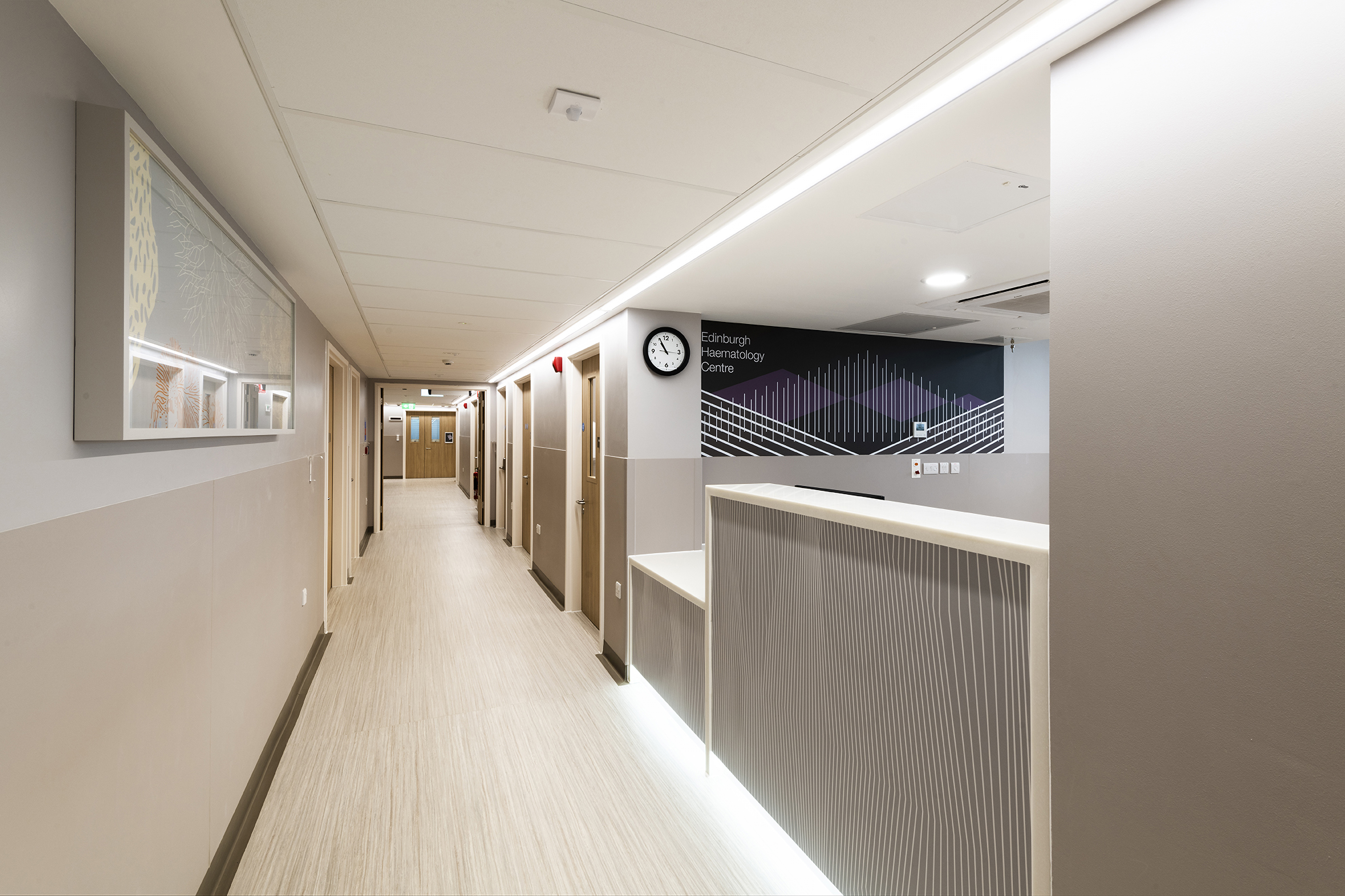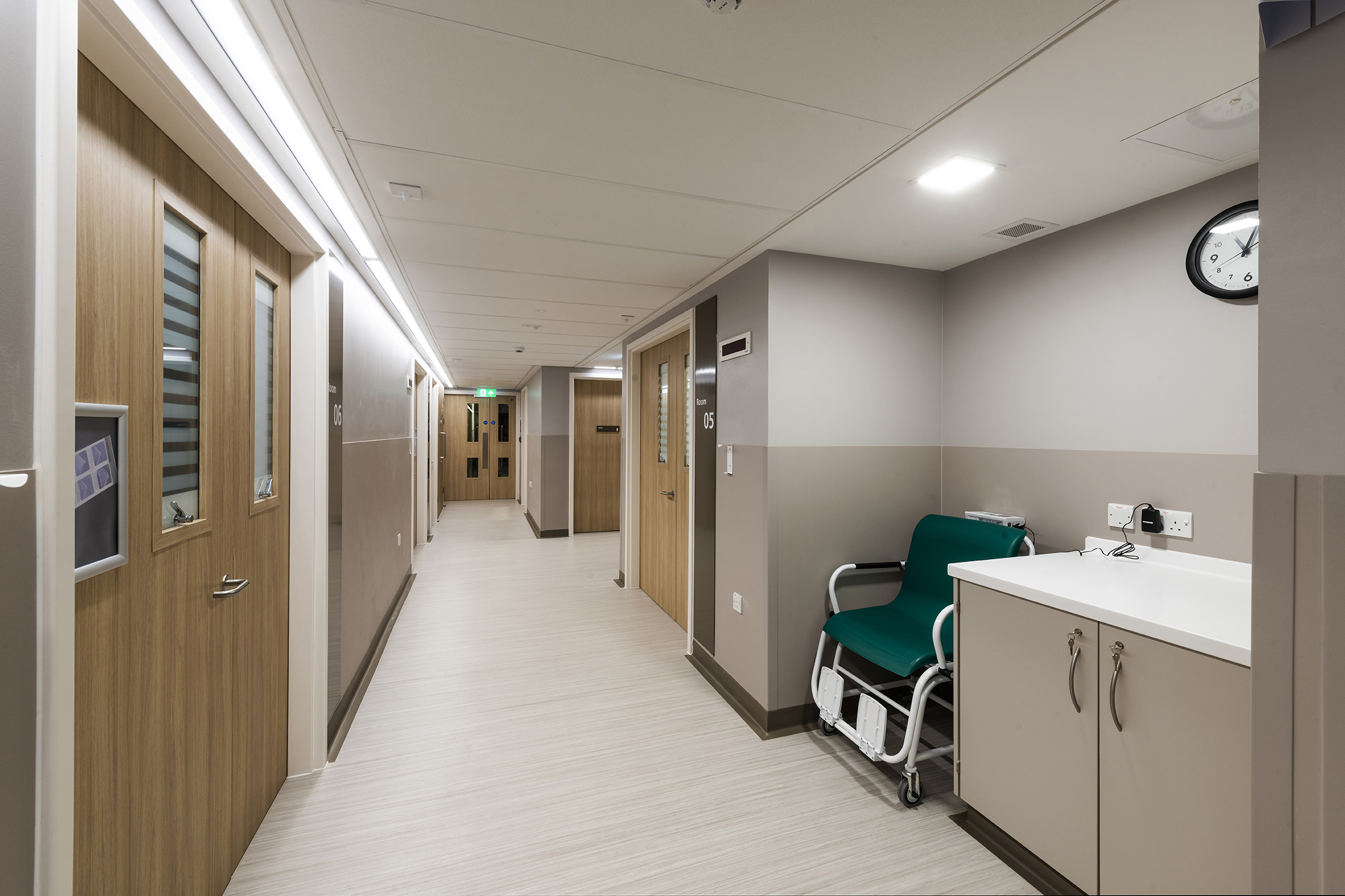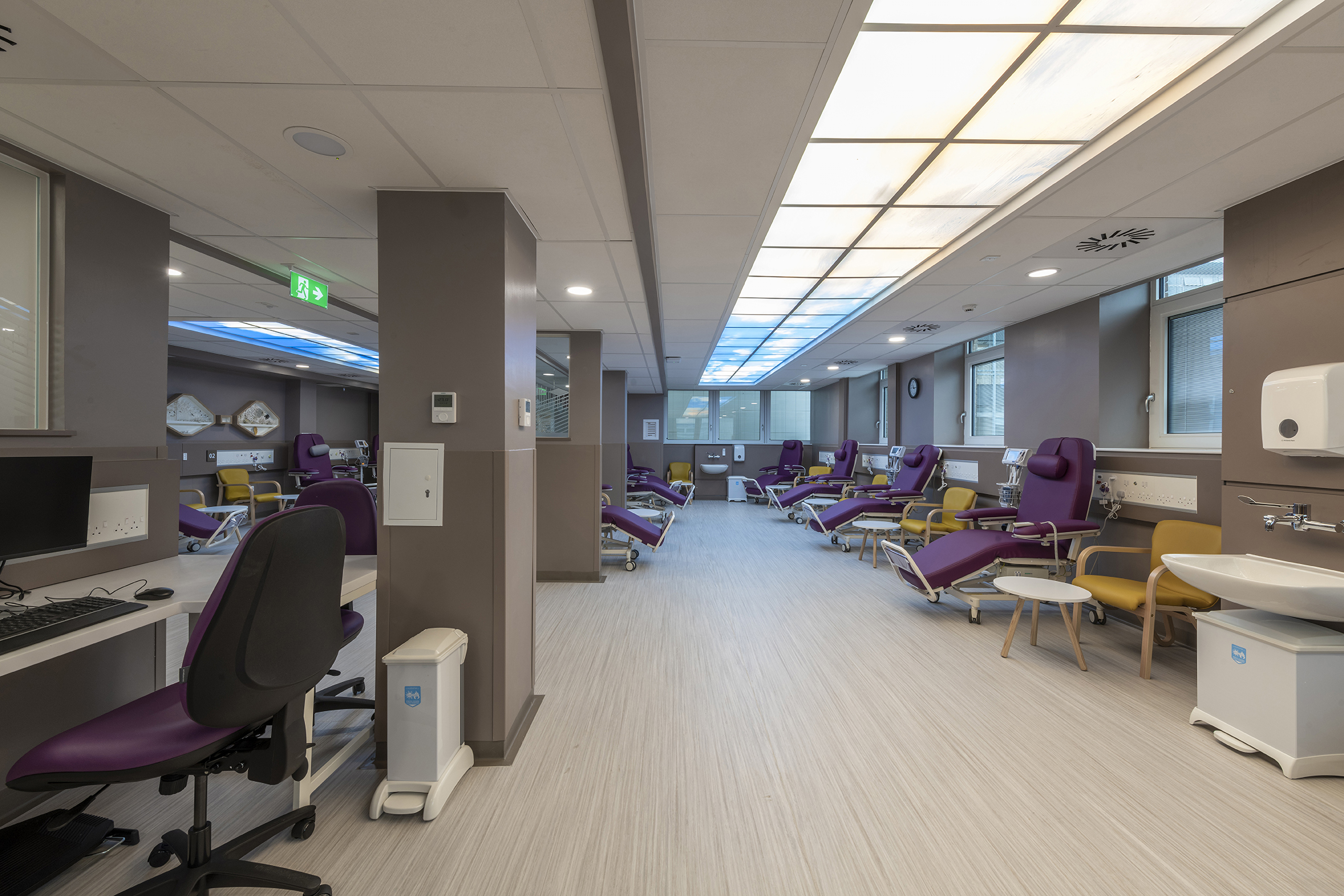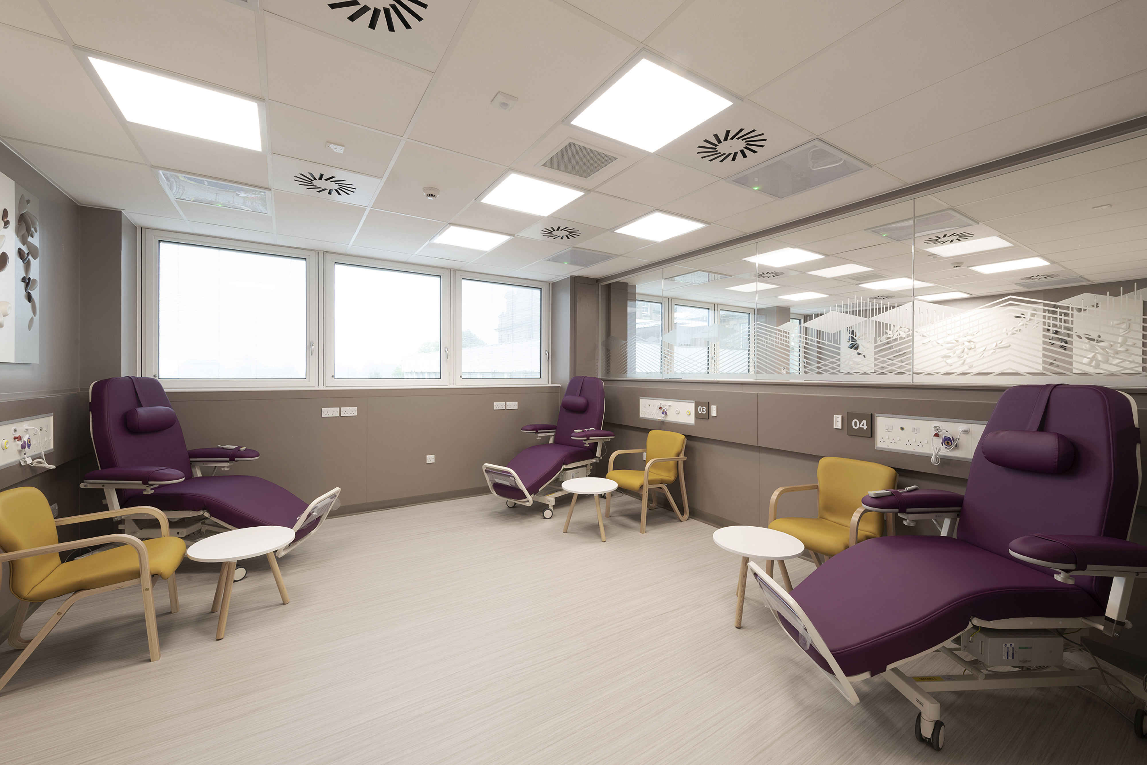 The project involved the refurbishment of three existing wards to create a new haematology department. The original non-compliant fire escape stairs were removed and replaced with a new external fire escape staircase. The ward was extended over a section of flat roof at the third-floor level to accommodate additional staff.