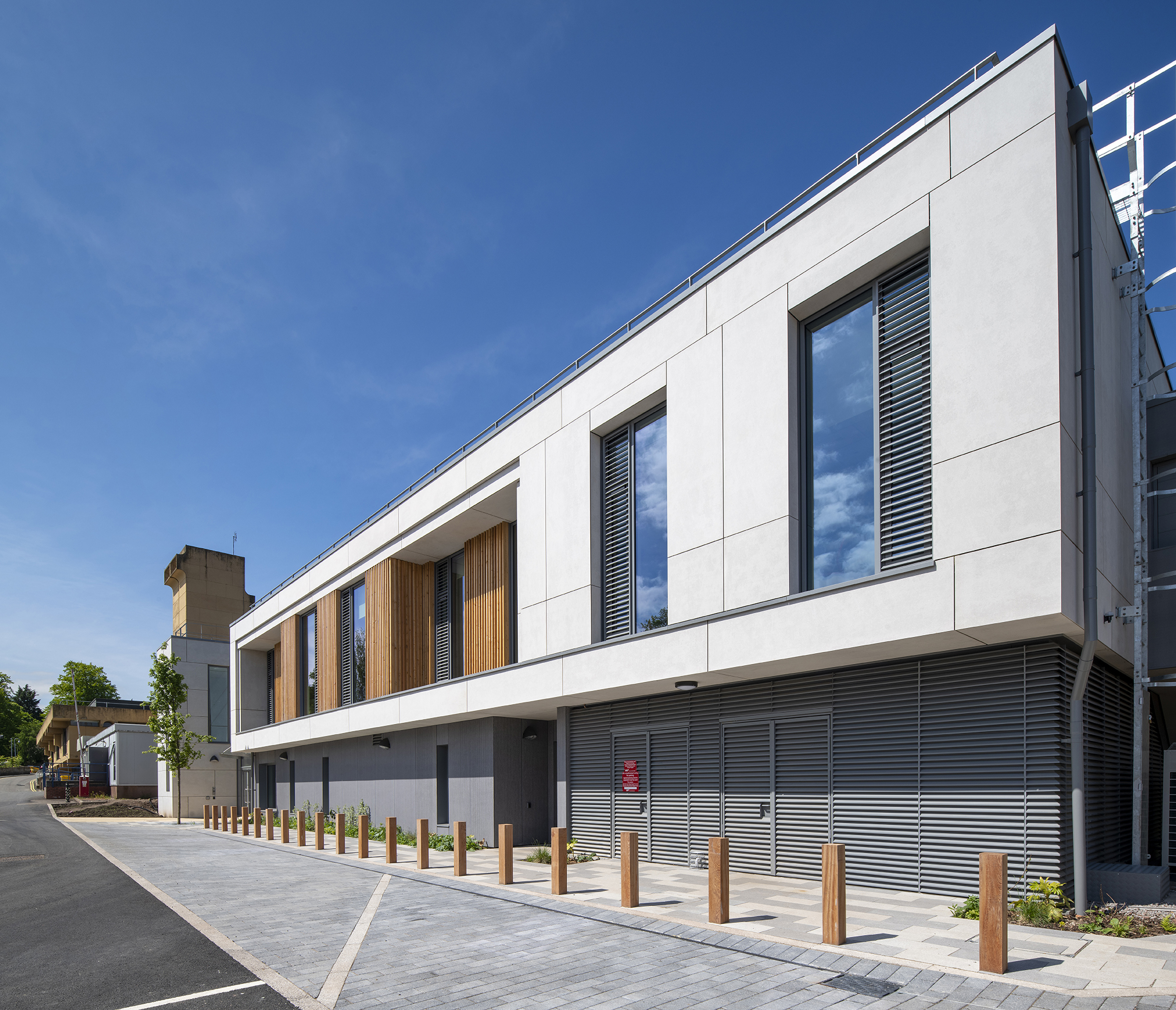 The new building replaces a smaller unit, which was over 30 years old, and very cramped. It has increased the number of dialysis stations from 9 to 12 so now up to 72 patients can be treated in the unit. The project involves the construction of a new two-storey steel framed building with a link bridge at the upper level to tie back into the existing Ward 1 building. Due to the slope of the site, the building is set into the ground with retaining walls forming the north wall of the lower ground floor.